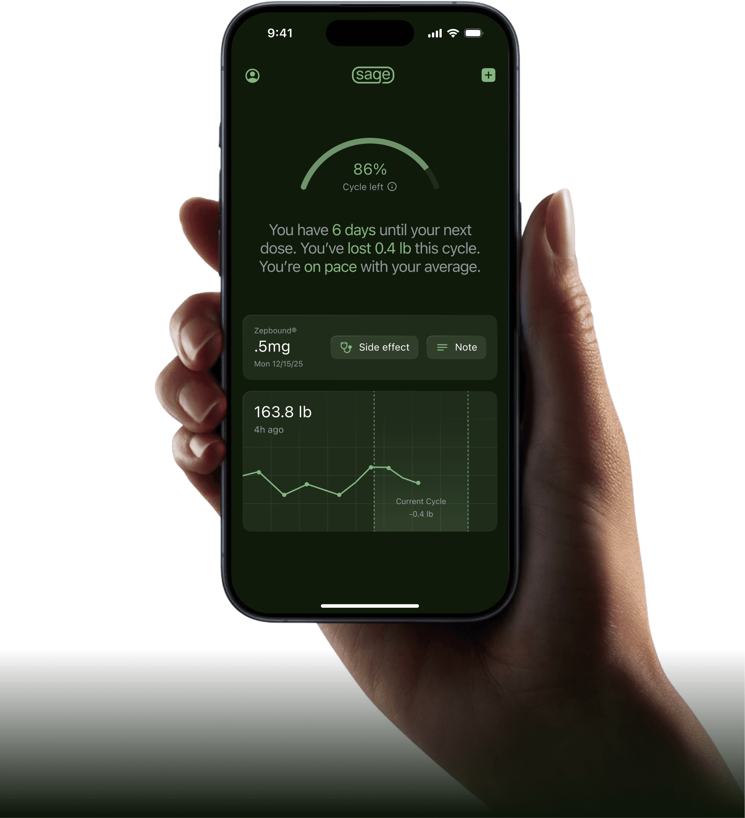Over the last year, I built Sage to be the ultimate companion for GLP-1 medication. I prioritized bringing ease, clarity, and efficacy to tracking. And it's only going to get better.